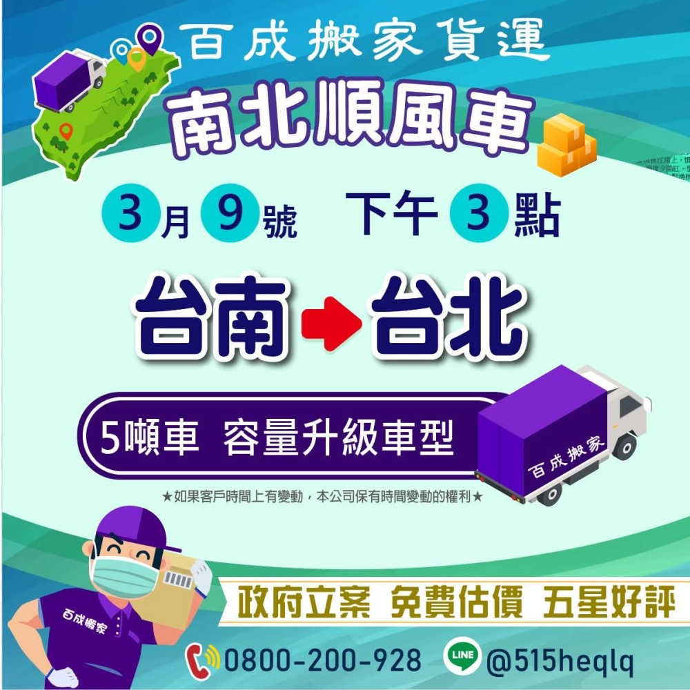 關於百成百成搬家貨運有限公司是交通部核准立案的合法搬家公司,也是南北順風車及合法廢棄物處理的專業服務業者。自成立以來,我們秉持「專業、用心、誠信、優質」的服務理念,堅持以高品質的搬家服務,贏得客戶長期的信賴與支持。